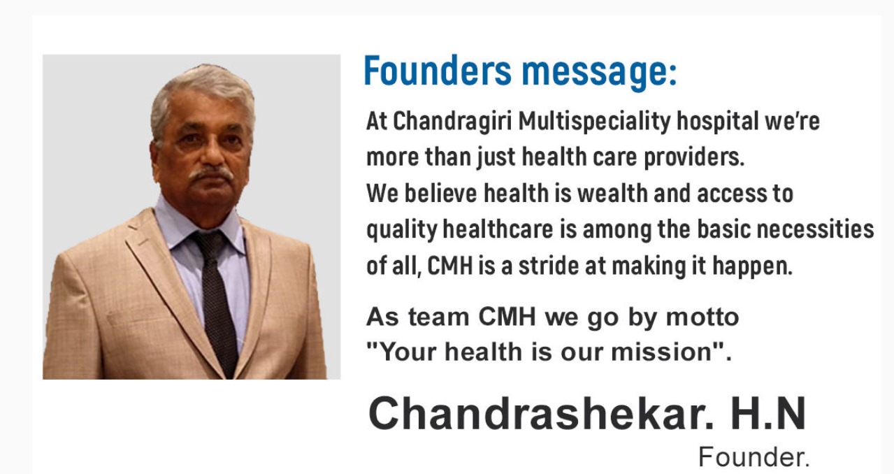 Chandragiri Multispeciality Hospital Welcome to Chandragiri Multispeciality Hospital, a leading healthcare facility dedicated to providing comprehensive, high-quality medical care to our community. Our mission is to enhance the health and well-being of our patients through compassionate care, advanced technology, and a commitment to excellence.